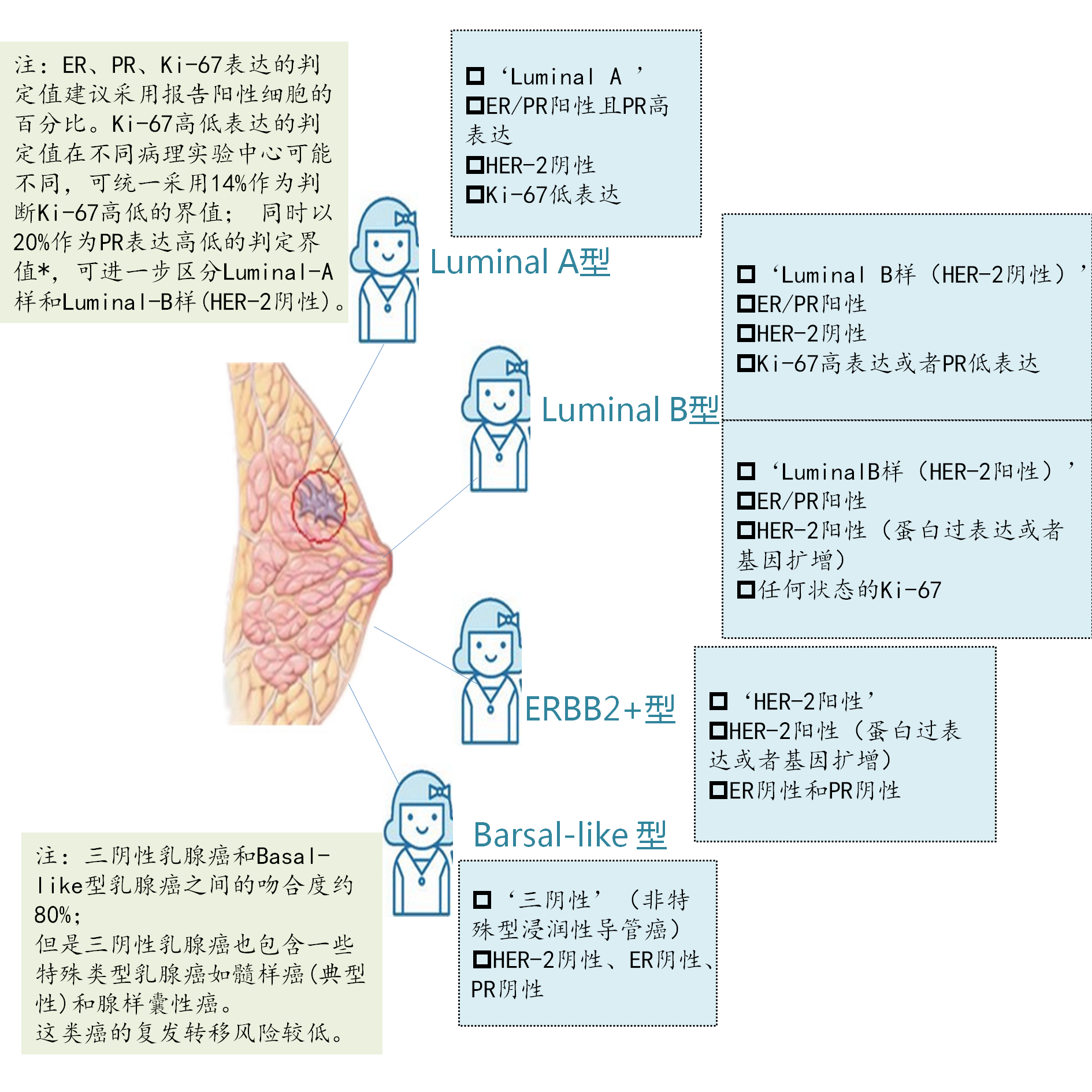 为了回答这个问题,我们从乳腺癌诊疗和效果深扒,首先我们来看一下乳腺癌分子分型的标准。